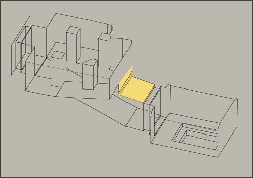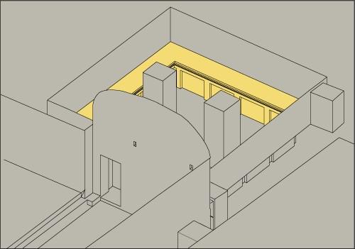 These shallow recesses occur directly after gates in sloping corridor ceilings. They were intended to accommodate the horizontal tops of door leaves serving to close the gates, when they were opened. Even when corridors later became more level these ceiling recesses are retained.