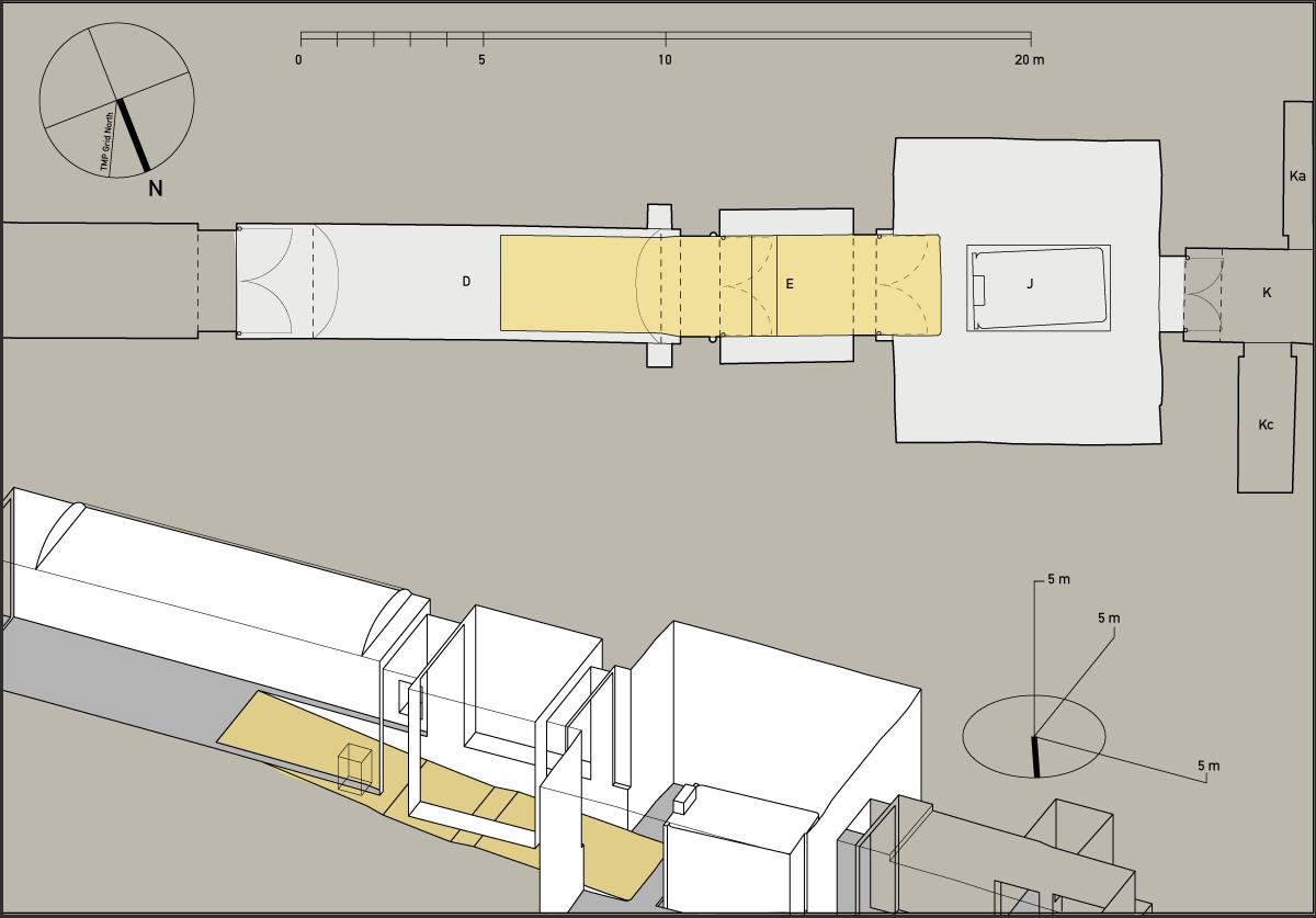 Sometimes a short ramp occurs at the end of a corridor, and even in some cases, continues through the subsequent chamber. In burial chambers with sunken central parts, access is often via ramps.