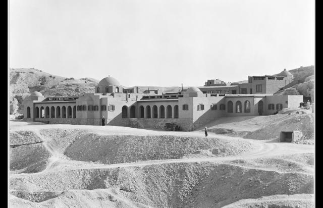 The West Bank of Luxor is largely notable for its ancient monuments and striking geological formations. The desert landscape is marked by several necropoleis, such as the Valley of the Kings, the Valley of the Queens and Western Wadis, the tombs of the nobles, temples and chapels, and settlements that date to various periods of Egypt’s ancient past. It is here that many archaeologists of early Egyptology worked and made world-changing discoveries. Annually spending several months at a time supervising excavations meant that living “on site” became a necessity. At the turn of the twentieth century, foreign archaeologists began constructing “dig houses,” that is, houses in which archaeologists lived and studied, at or near excavation sites throughout Egypt. In Luxor, other houses, like Wilkinson House and Bayt Madinah, were repurposed ancient Egyptian tombs. Over time, several dig houses were built, modified, and occasionally torn down on the West Bank of Luxor, and some houses are still used today as dig houses or as museums, like Carter House.