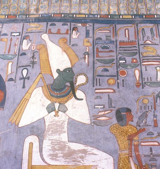 An important mummiform god associated with fertility, death, and resurrection. Shown as a mummy, his arms crossed, holding the crook and flail, he wears the atef crown with two plumes and was identified with the dead king. Principal sites of his worship include Abydos, Busiris, Memphis, Heliopolis, and Sais. He was the son of Geb and Nut, and brother of Seth and Isis.