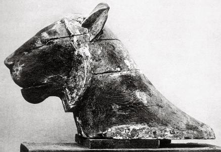 Wooden head of hippopotamus, one of a pair, probably from a ritual funerary bed.