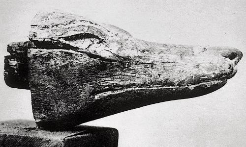 Wooden head of jackal, originally with inlaid eyes, probably from a statue of Anubis.