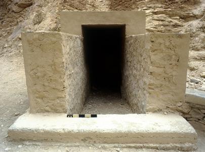 Modern steps leading to KV 34 entrance; entrances to KV 32 and KV 42.