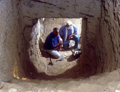 Pottery found in situ; stairwell leading toward upper part of tomb.