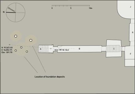 Damaged pillar, unfinished star pattern on ceiling; sarcophagus.