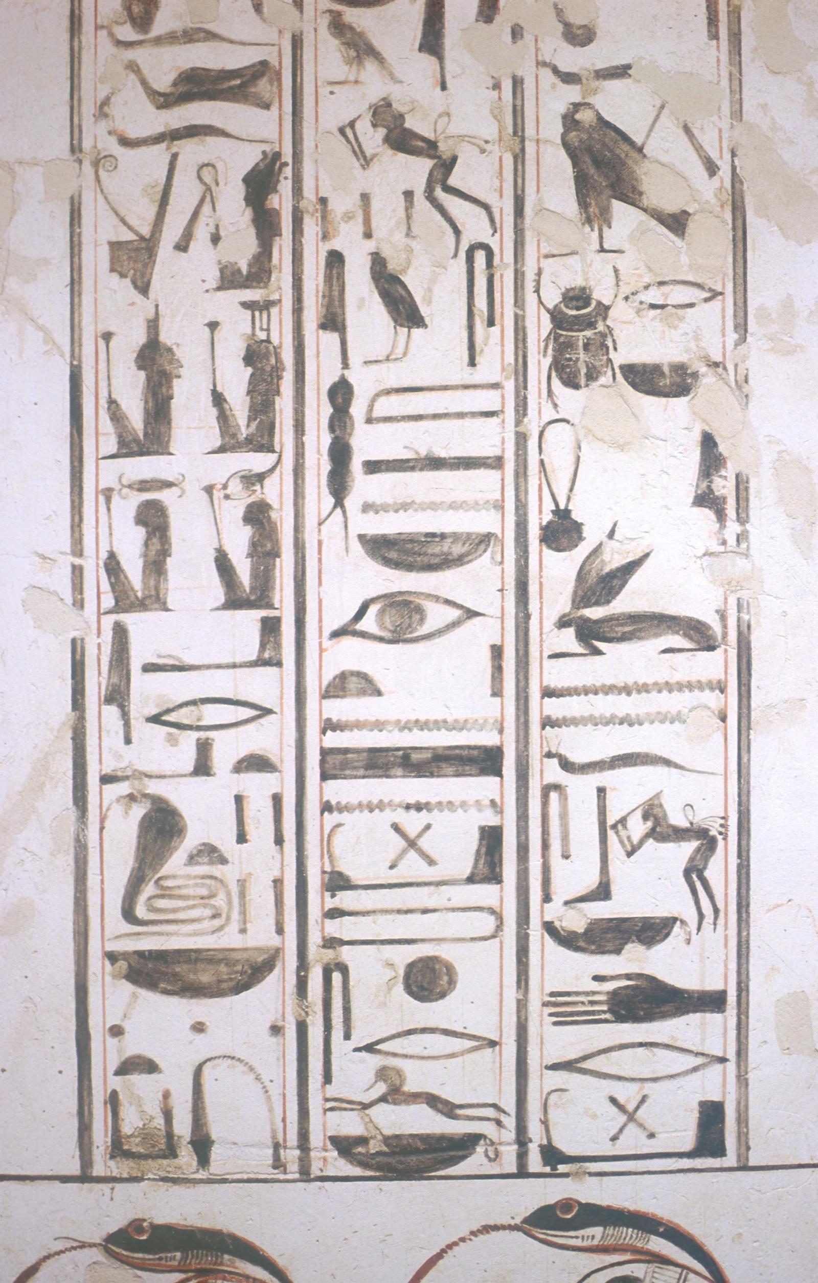 Hieroglyphic text columns including mention of goddesses as fire-spitting cobras.