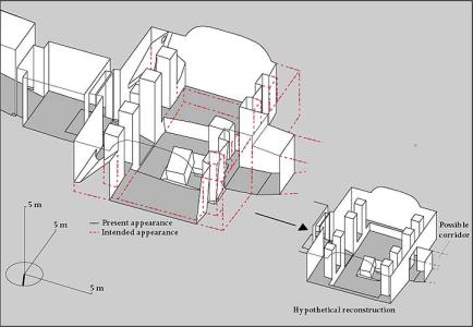 Book of the Earth, part D; broken red granite outer sarcophagus box and pit.
