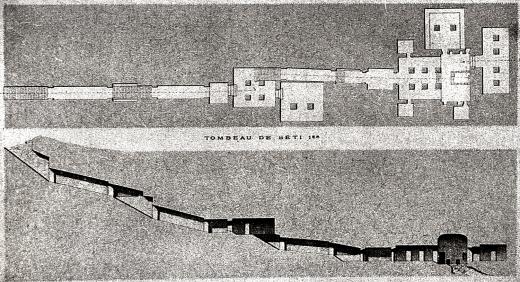 Opening of the Mouth ritual, opening scene: Sety I seated before offering table and two Iwnmutef priests (reconstruction).