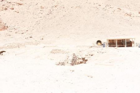 Entrances to QV58, QV59, and QV60 with workers' huts.
