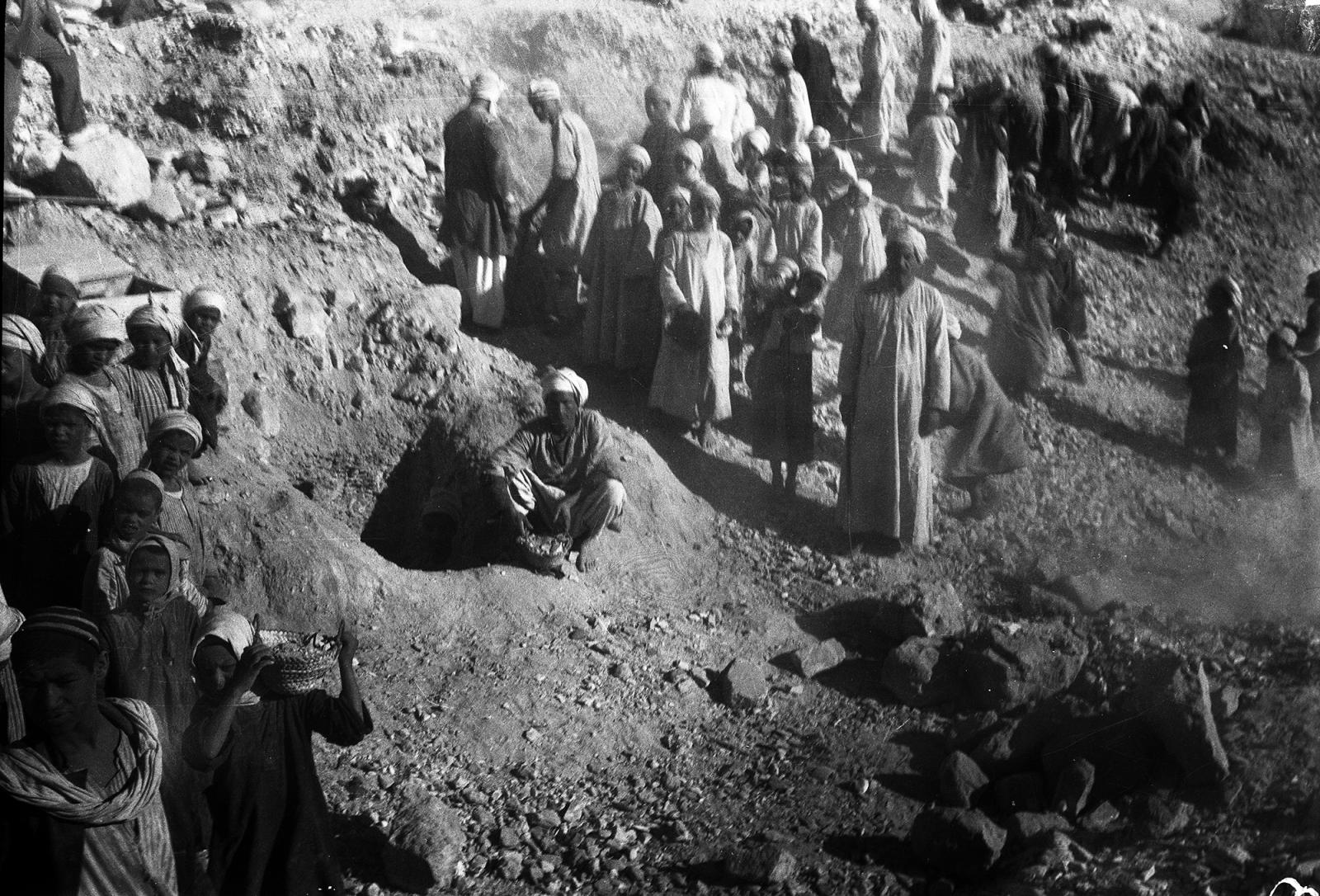 Workmen photographed during excavations in the Valley of the Queens. Italian Archaeological Expedition excavations. Courtesy of the Egyptian Museum in Turin.