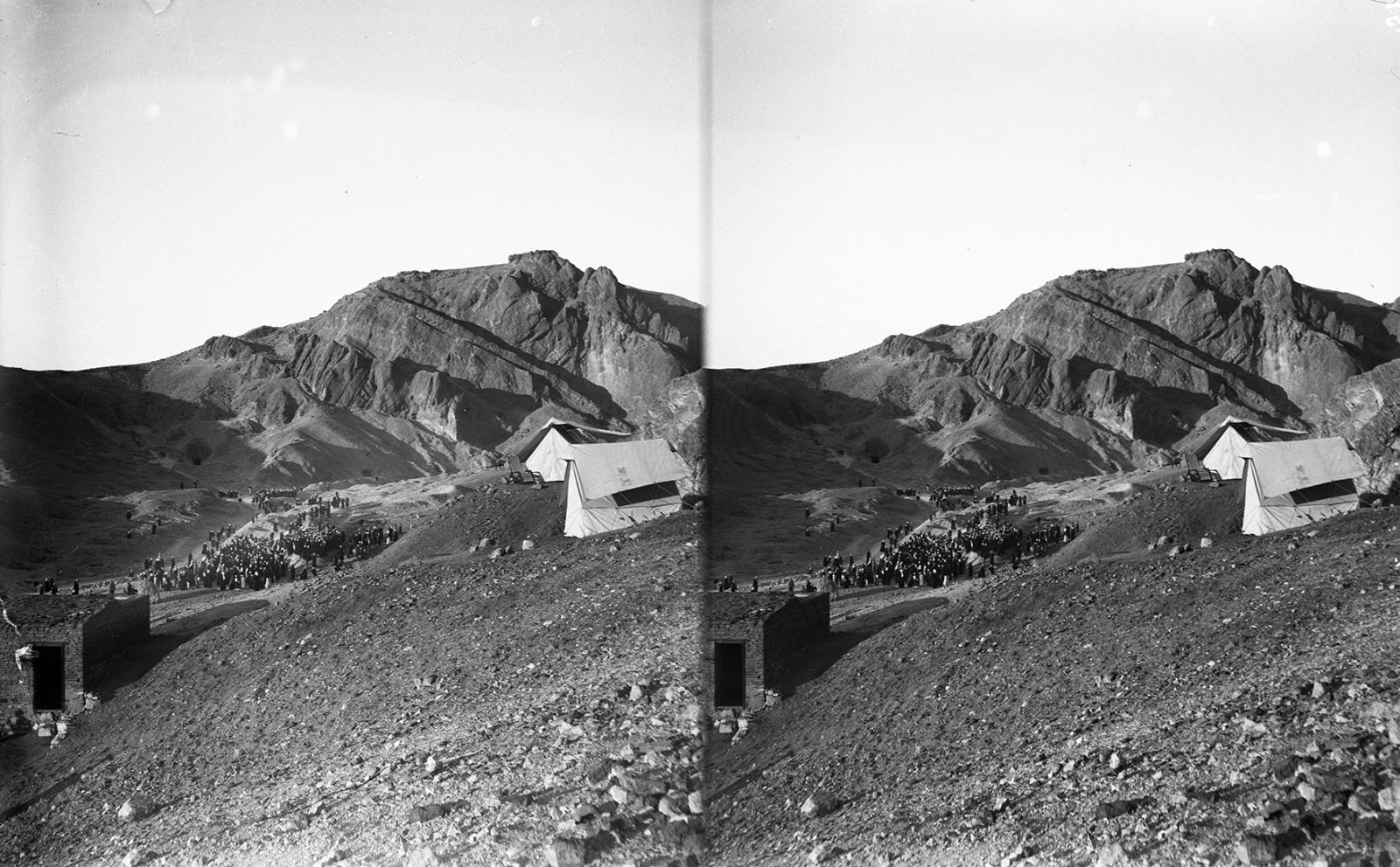 View of the Valley of the Queens. In the foreground the tents for Farina's excavation are visible. Italian Archaeological Expedition excavations. Courtesy of the Egyptian Museum in Turin.