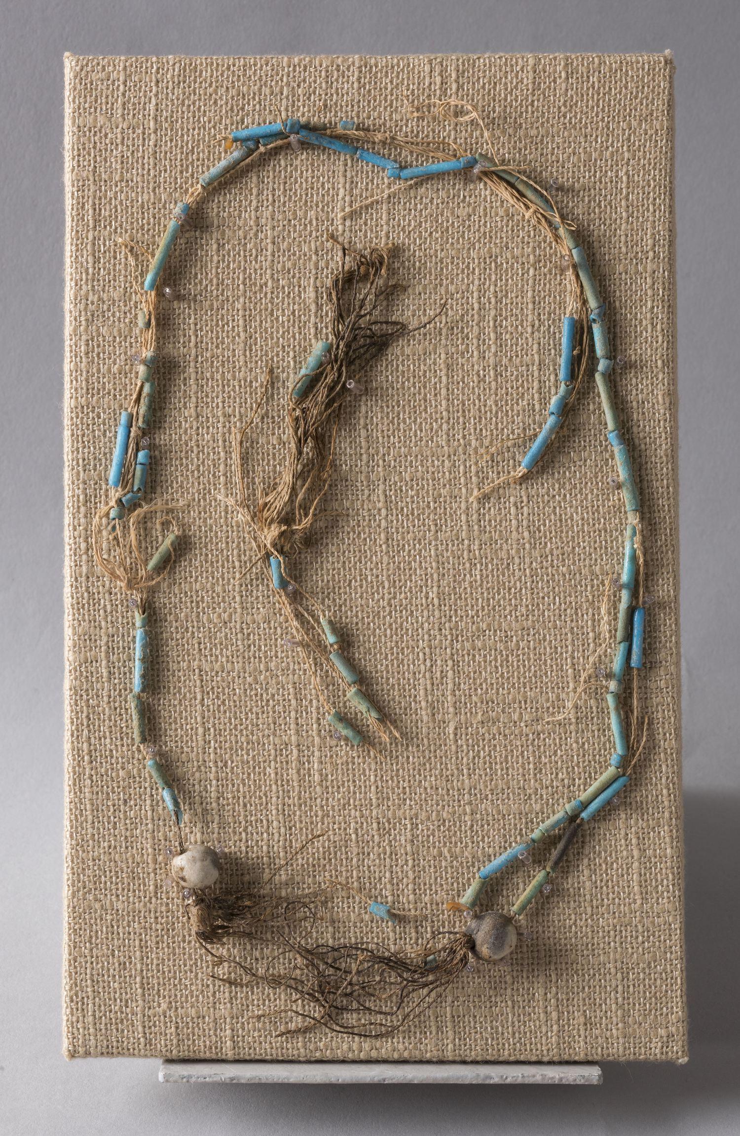 Faience and plant fiber funerary net from the mummy of Harwa (A) found either in QV 43 or QV 44. Courtesy of the Egyptian Museum in Turin (S.5226/4 a-b).