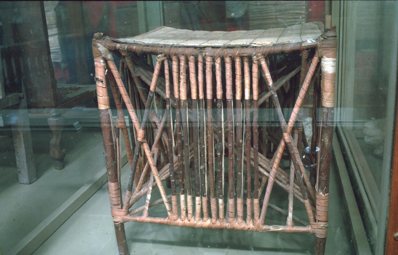 Stool carved from ebony wood and woven with plant fibers and leather (Cairo Museum). Courtesy of Uni Dia Verlag; Uni Dia Image Nr. 35567.