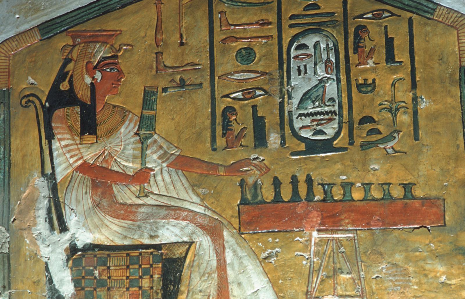 Detail of the queen playing senet, Chamber B, south wall (left part). Courtesy of Uni Dia Verlag. Uni Dia Image Nr. 36804.