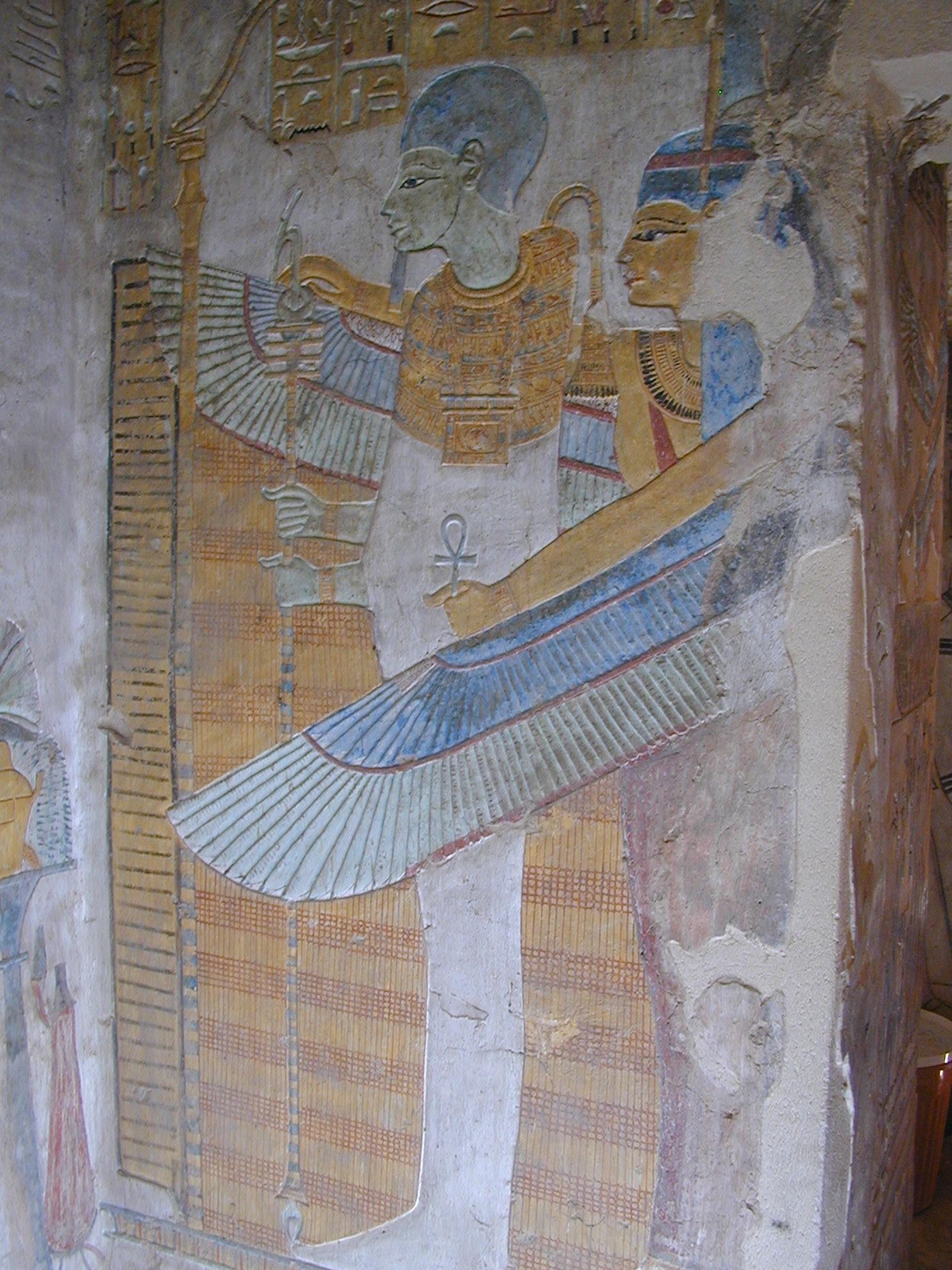 Chamber I, rear wall, left part. The deity Ptah protected by the winged deity Ma'at on each side of the gate. Courtesy of Richard Sellicks.