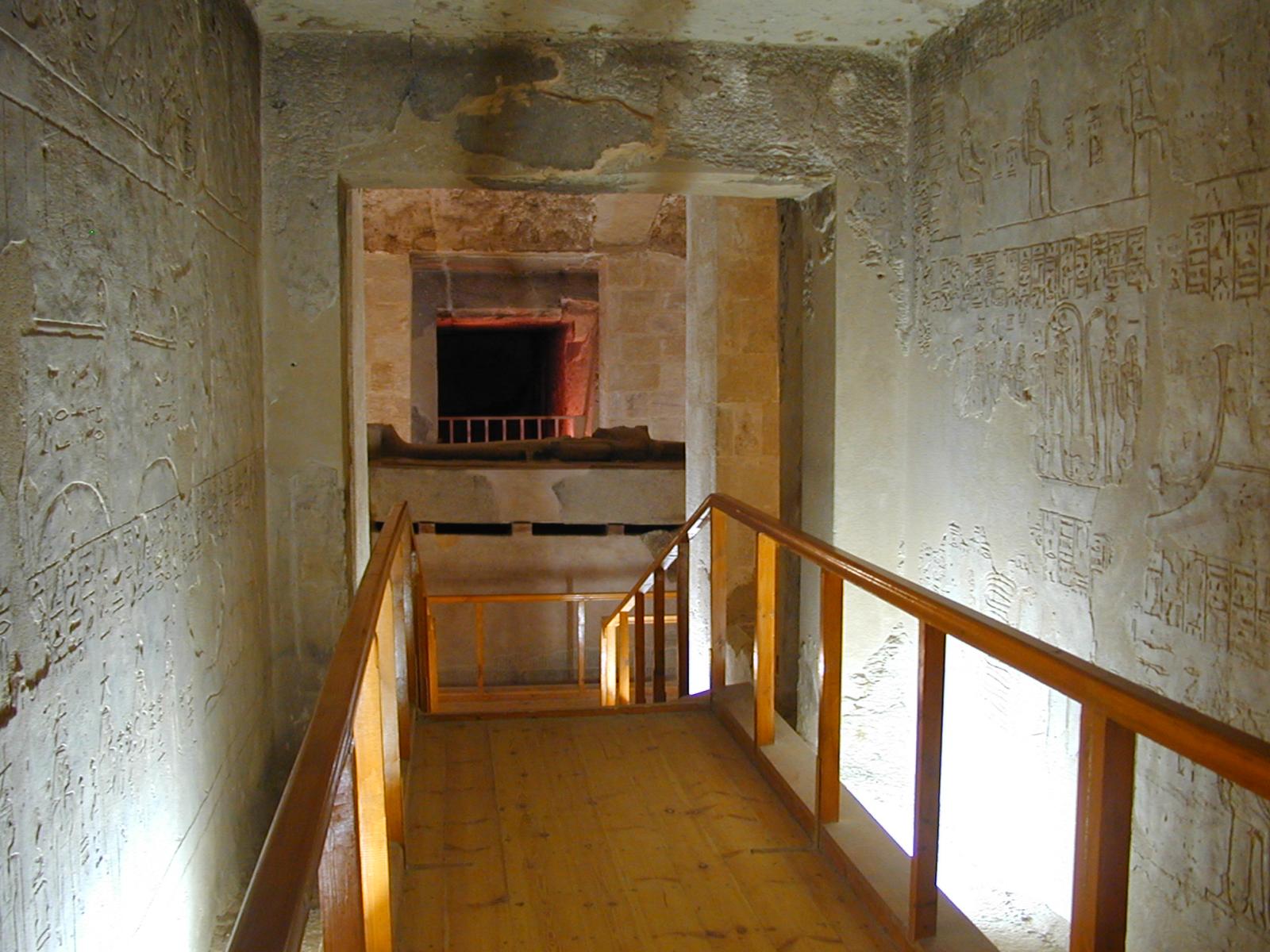 View of Burial chamber J2 and the sarcophagus; Imydwat, seventh and eighth hours, Corridor L. Courtesy of Richard Sellicks.