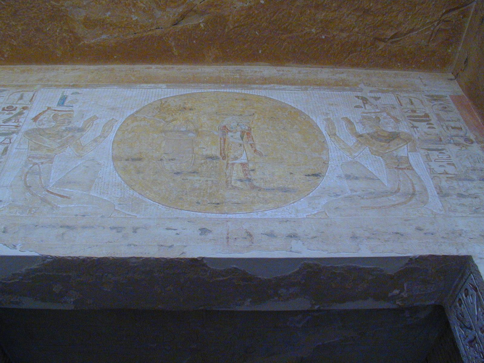 Sun disc flanked by the deities Isis and Nephthys kneeling on a lintel of Gate B. Courtesy of Richard Sellicks