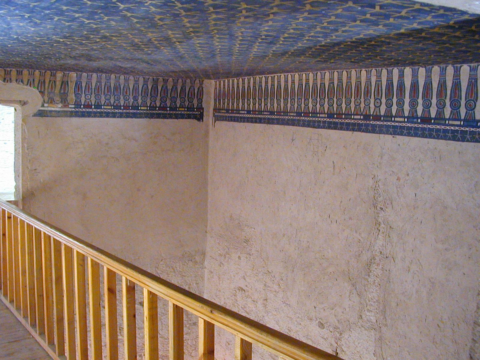 Well chamber E, northeast corner. Kheker-frieze and star-spangled ceiling motifs. Courtesy of Richard Sellicks.