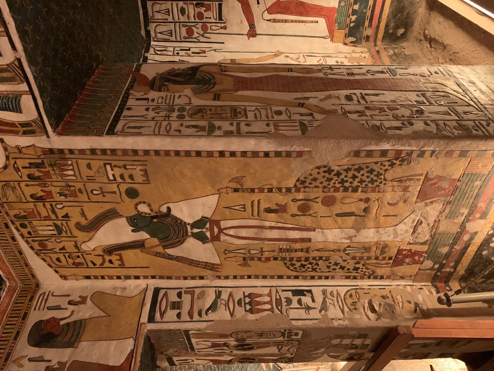 Chamber B, right wall, left part. Osiris flanked by imiut-fetishes. Courtesy of Richard Sellicks.