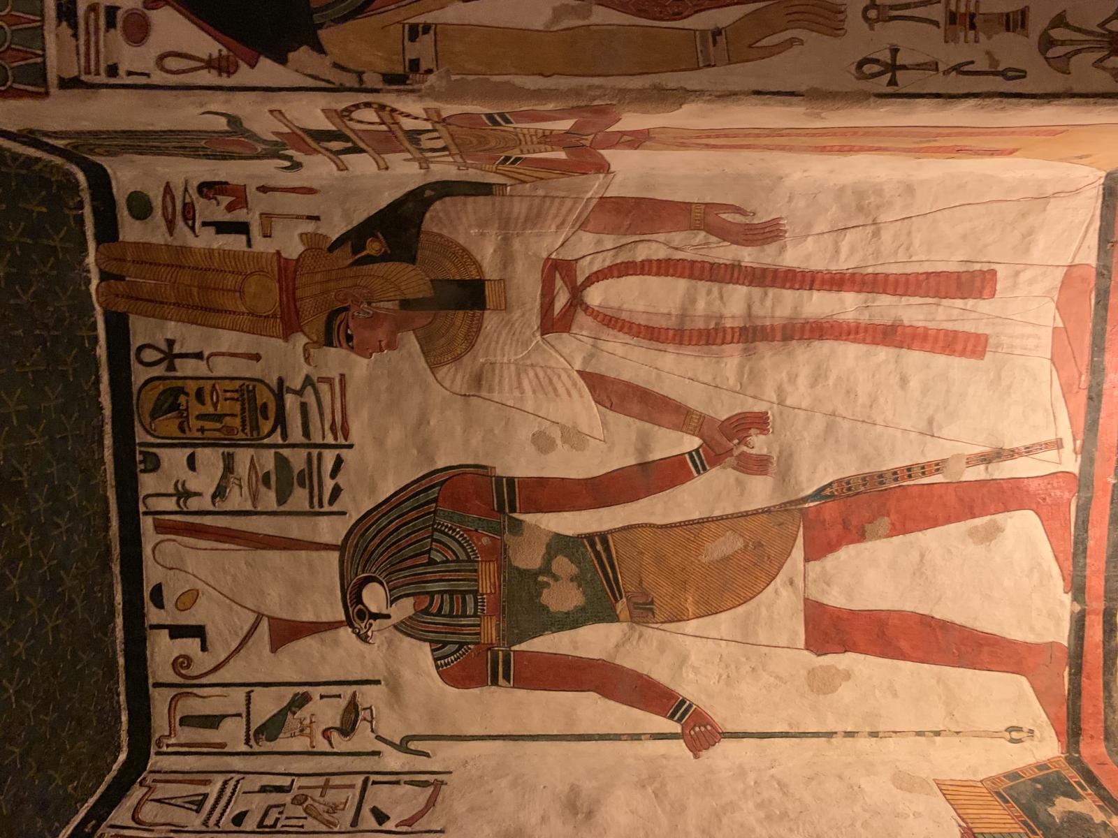 Chamber B, inner part, front wall; the deity Horsiese and Queen Nefertari. Courtesy of Richard Sellicks.