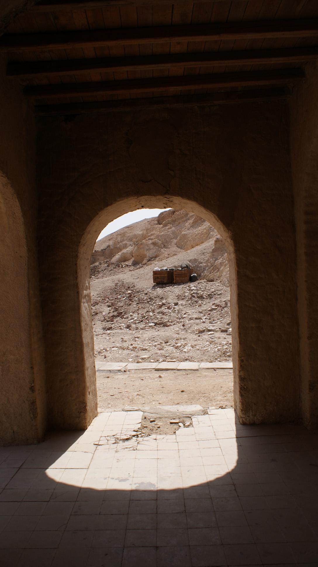 View out through one of the arches of the east portico of the Metropolitan House. Courtesy of Marcel and Monica Maessen.