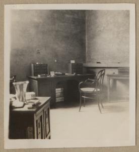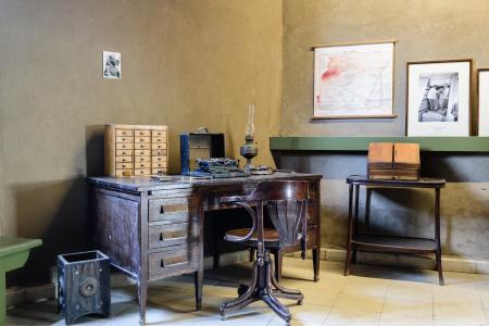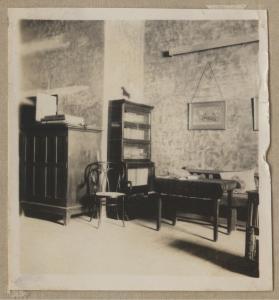 Display in Carter House of period accurate accoutrements, supplies, and dinnerware.