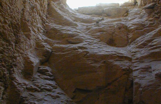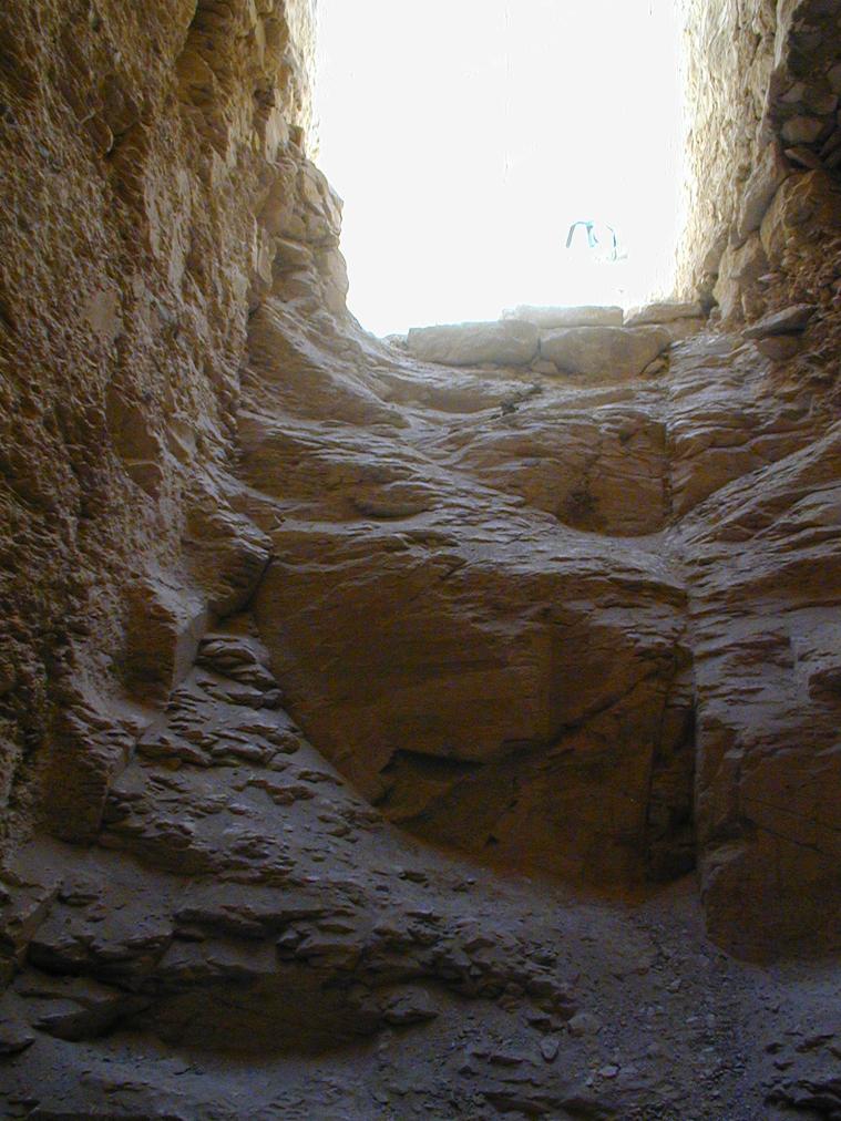 See entire tombThe entryway consists of a stairway, cut at the base of a cliff. The only traces of plaster in the tomb were found here, used to fill cracks.