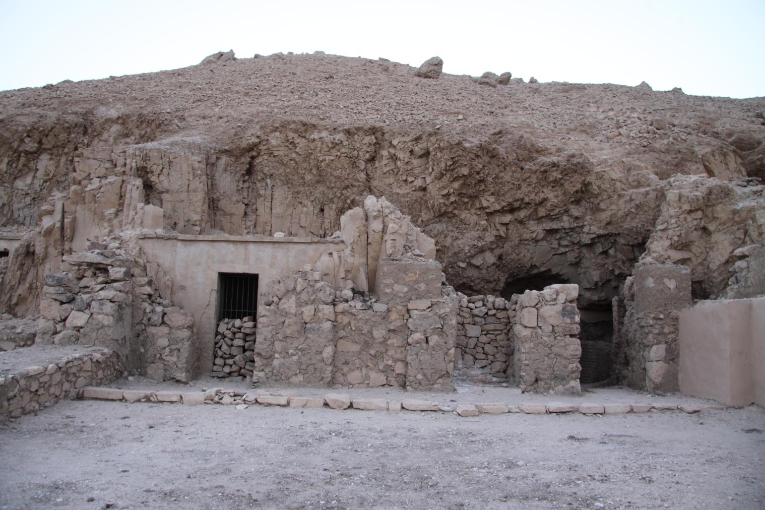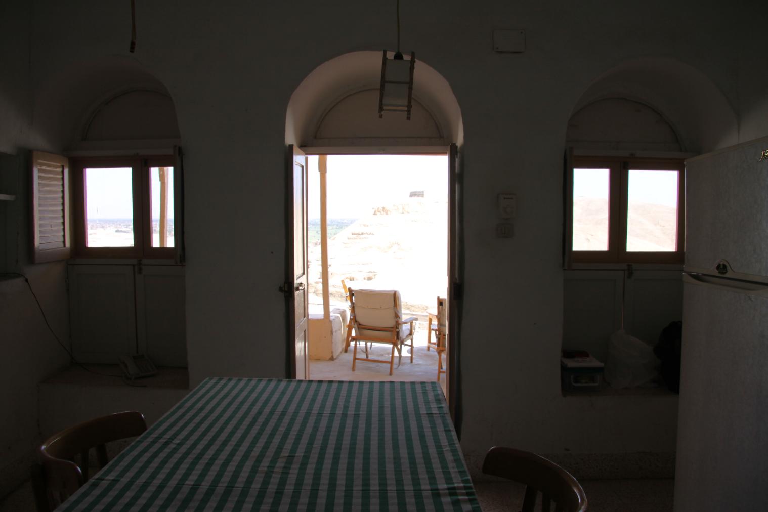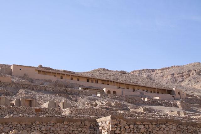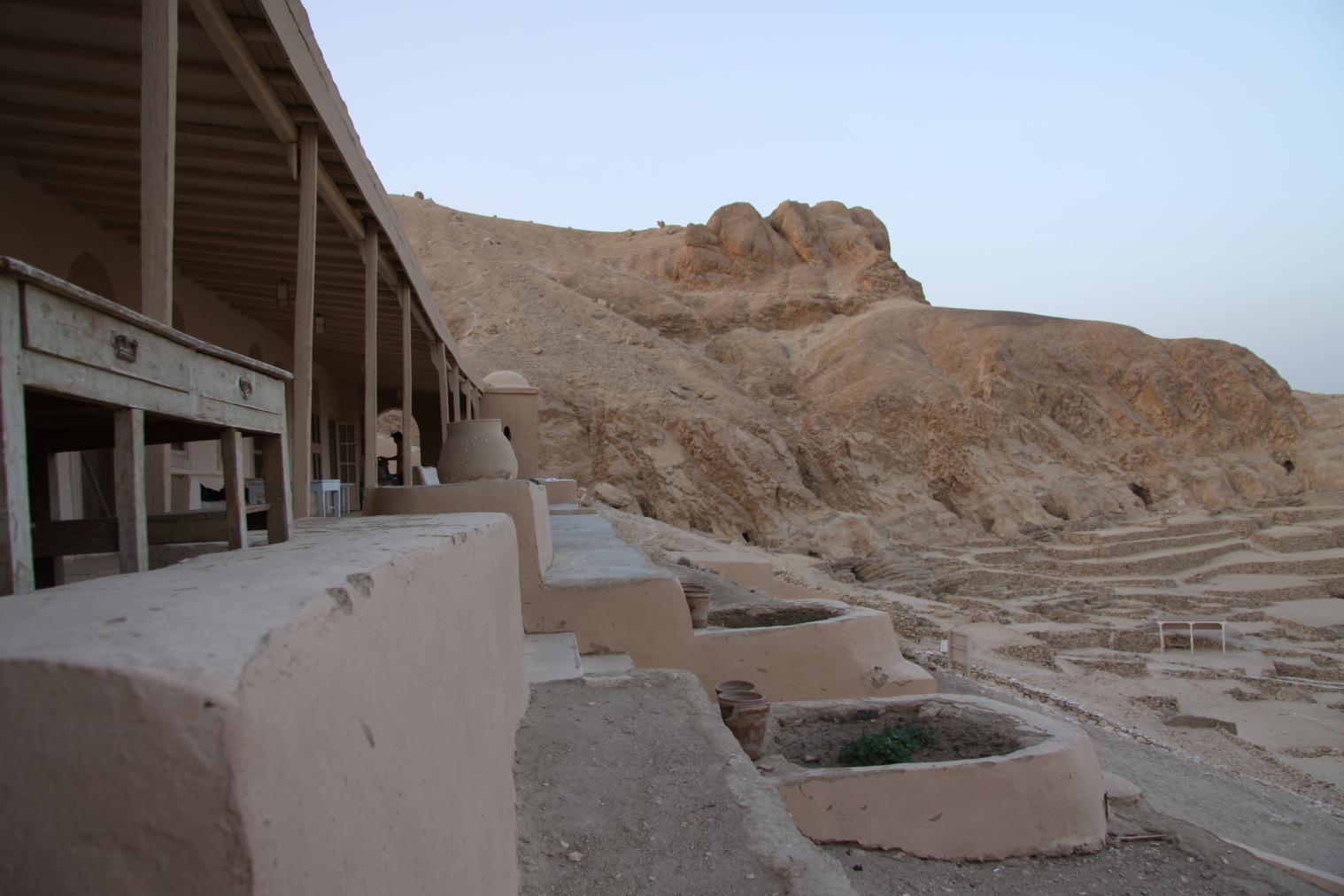 Bayt Madinah is the name applied to the dig house situated at Dayr al-Madinah. It is an elongated and narrow building set high along the cliff face that strikes a commanding presence where it overlooks both the ancient site Set-Ma’at, or “the Place of Truth”, the settlement wherein lived the tomb builders of the Valleys of the Kings and Queens, as well as the tombs of the same individuals. The house sits above an ancient tomb shaft and burial chamber, perhaps belonging to one of the tomb builders of Dayr al-Madinah.