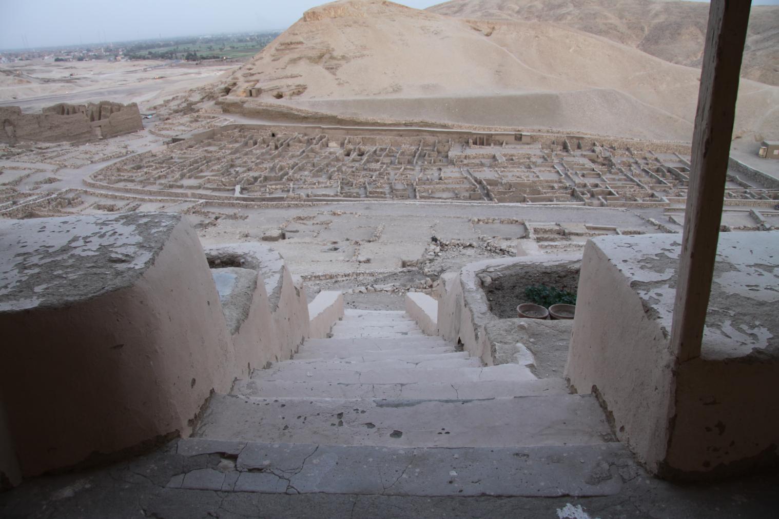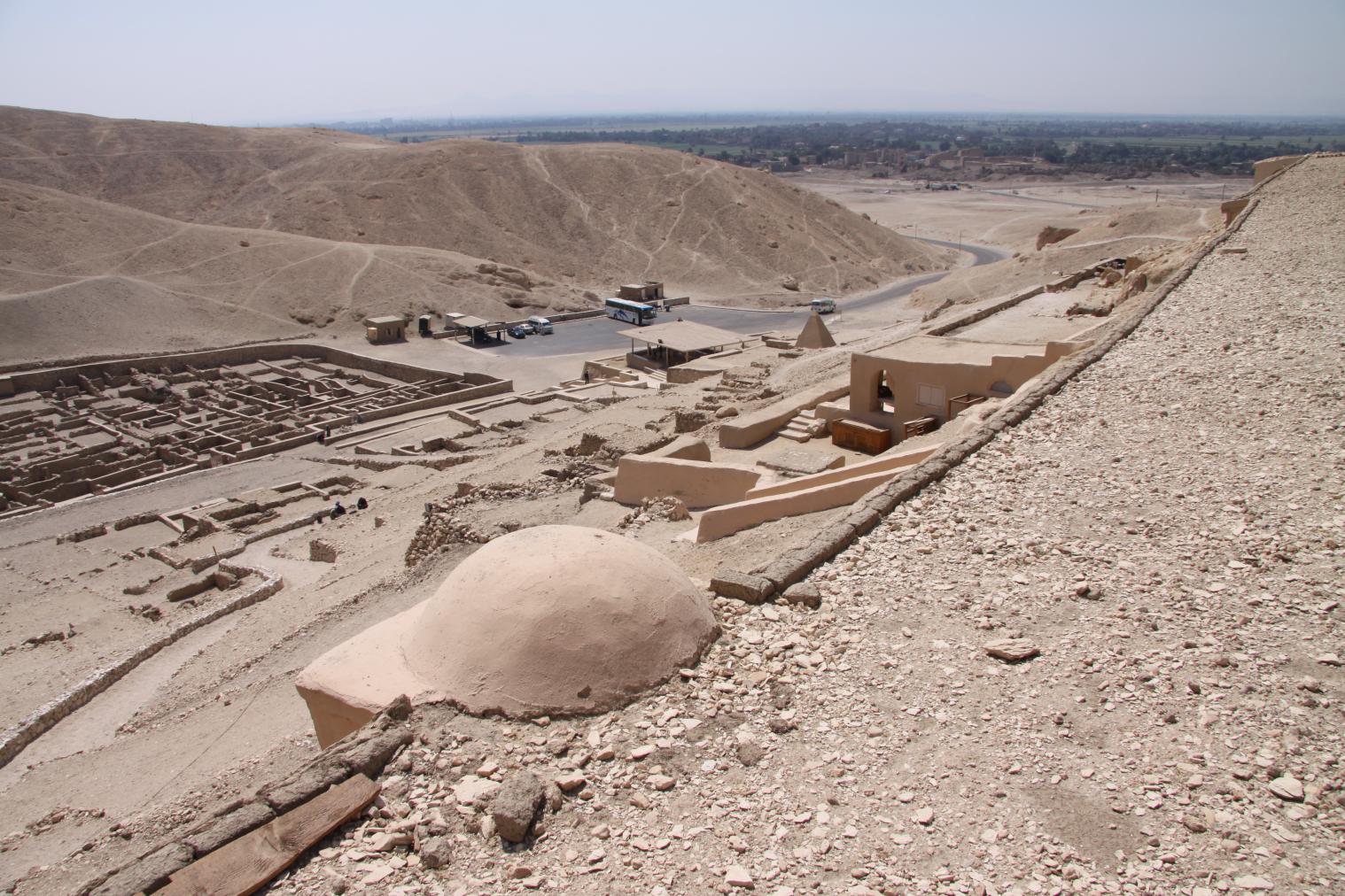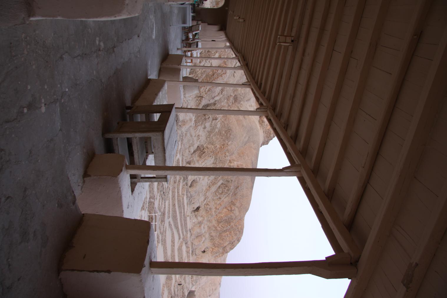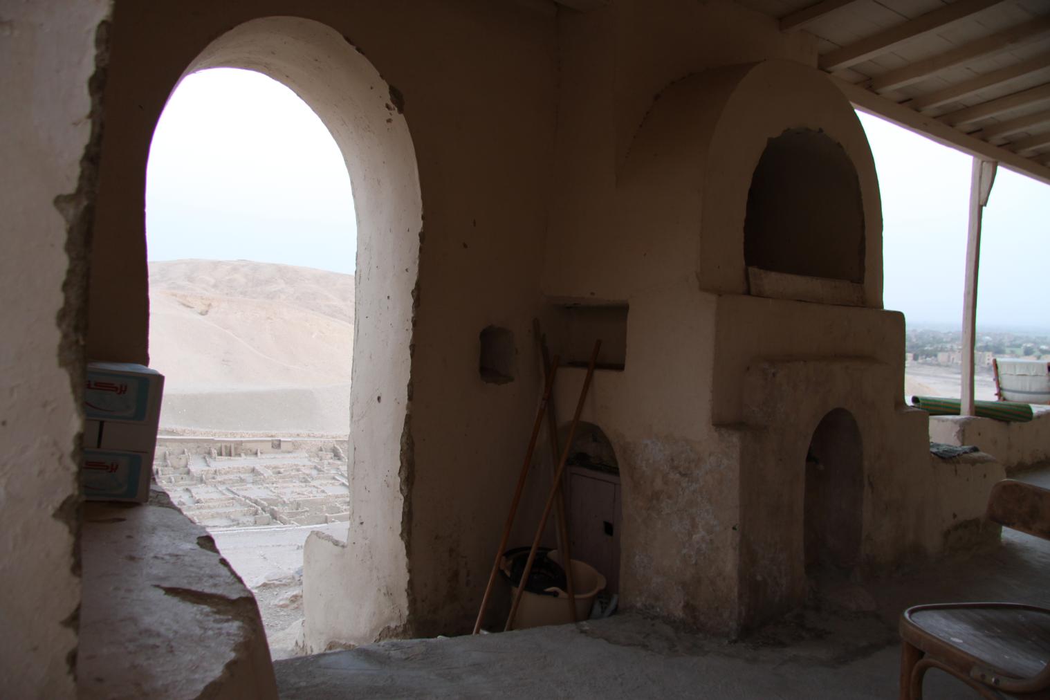 Bayt Madinah is the name applied to the dig house situated at Dayr al-Madinah. It is an elongated and narrow building set high along the cliff face that strikes a commanding presence where it overlooks both the ancient site Set-Ma’at, or “the Place of Truth”, the settlement wherein lived the tomb builders of the Valleys of the Kings and Queens, as well as the tombs of the same individuals. The house sits above an ancient tomb shaft and burial chamber, perhaps belonging to one of the tomb builders of Dayr al-Madinah.
