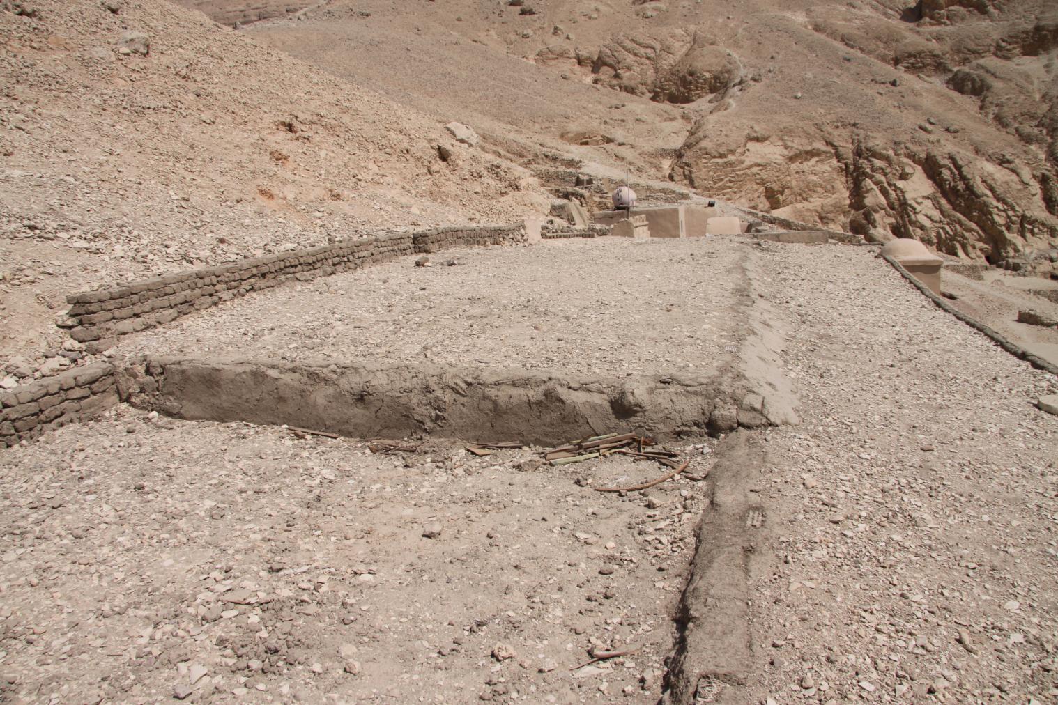 Ernesto Schiaparelli, on behalf of the Italian Archaeological Mission, built the original house at Dayr al-Madinah in 1904 and worked there at least through 1909. It is not known when he abandoned the house. The dig house site did not only include the small mud brick house but also conical tents were set up in front of the house, slightly farther down the mountain, as additional accommodations for the excavation team working there.