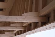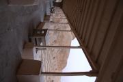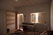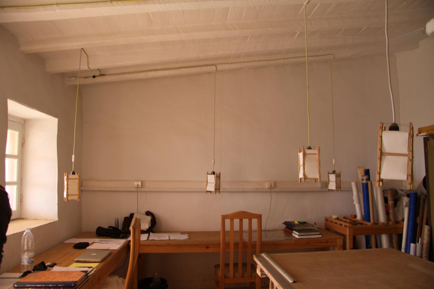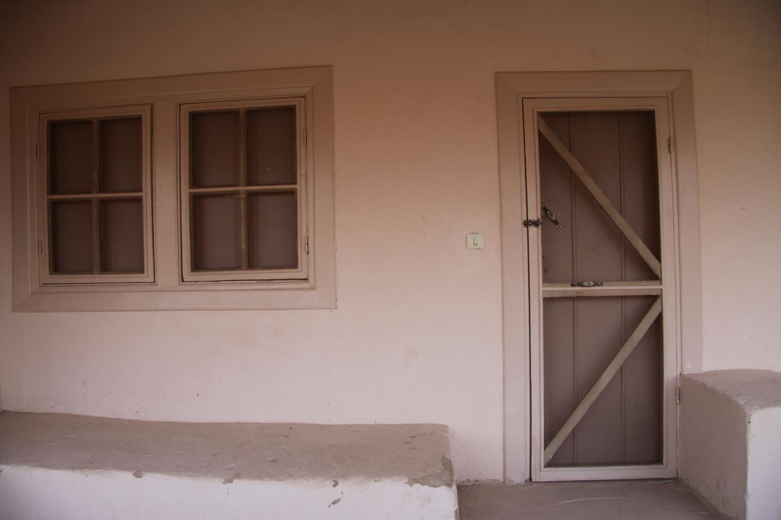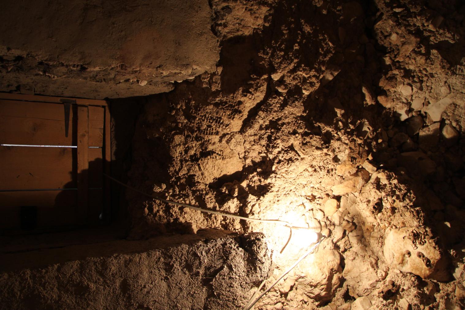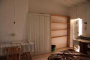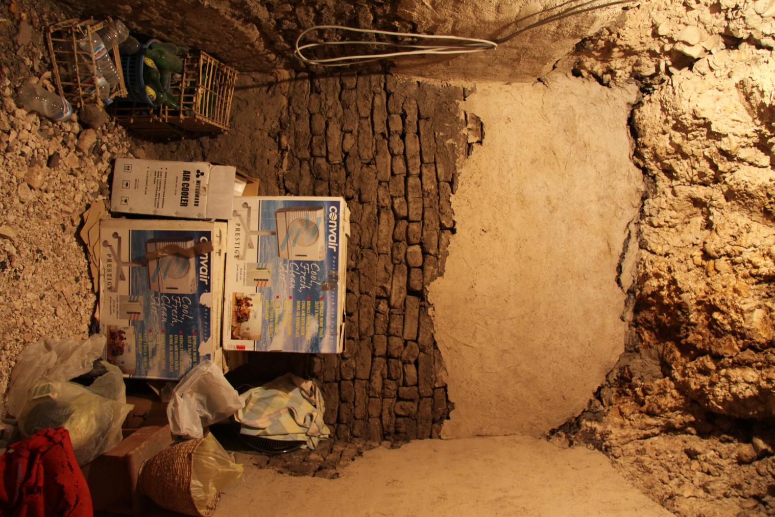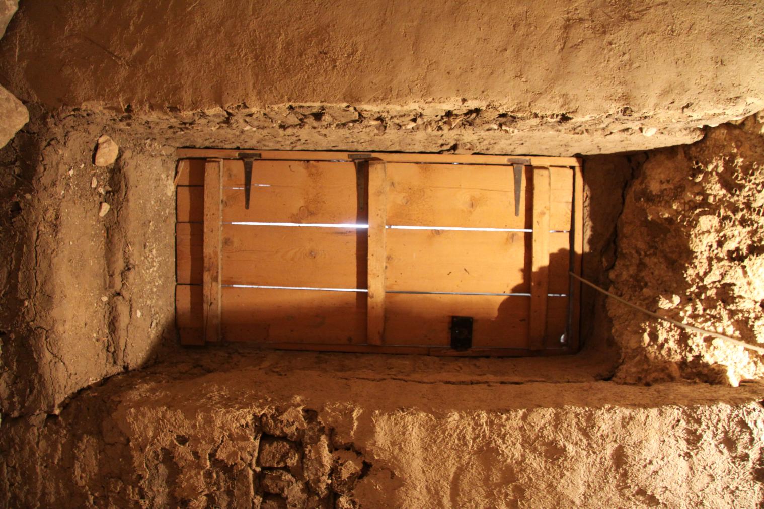 An earlier, much smaller, mud brick house built by Italian archaeologist Ernesto Schiaparelli had only three rooms including two rooms and one kitchen. It was expanded by the French mission to consist of eight rooms. It is built of mud brick, and its roof is made of wood logs overlaid with paper that is covered with sand and stones. A cement floor covers the ancient tomb shaft and burial chamber. One room of the house, Theban Tomb 328 (TT 328), is actually an ancient tomb chapel belonging to a man named Hay. It has been repurposed as a storeroom for antiquities and mummified remains that have been excavated during field seasons.