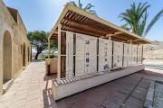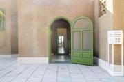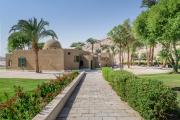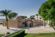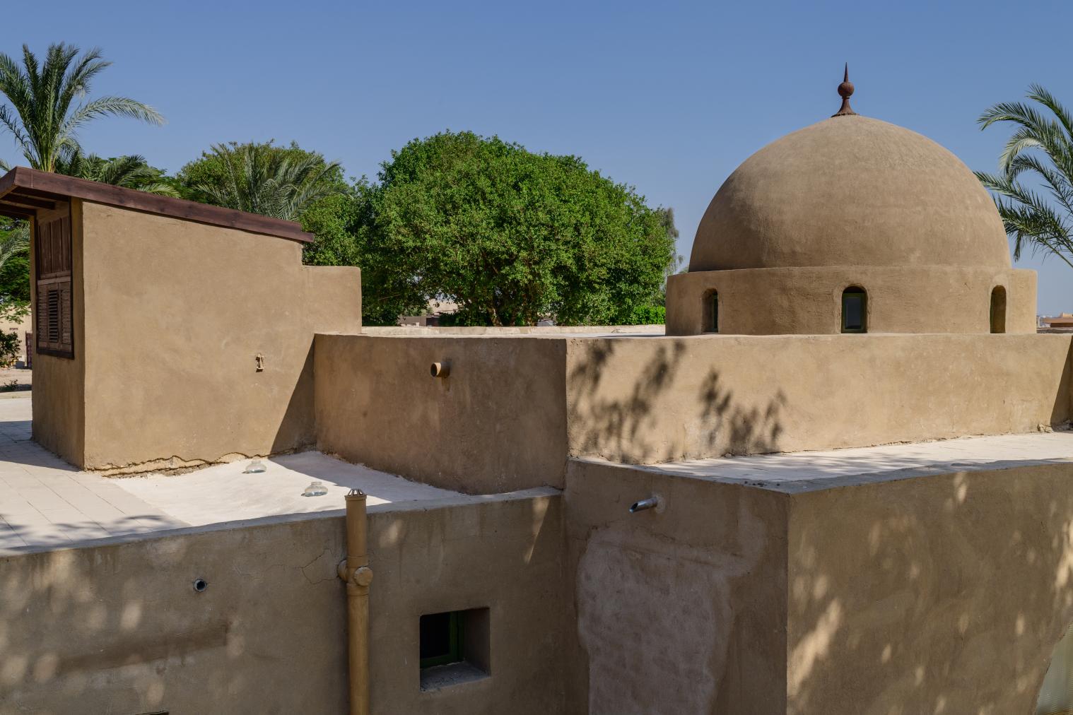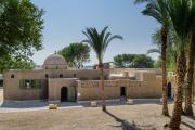 Previous repair attempts included whitewashing the walls. This was removed and the original unpainted mudbrick was restored. Outside, sandstone paving, benches, and shade structures were erected.