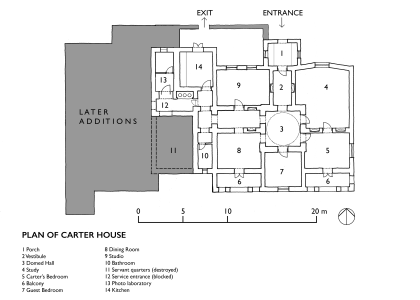 Carter House, designed by both Howard Carter and Somers Clarke, and financed by Lord Carnarvon, was built in 1911 and is situated at the entrance to the Valley of the Kings. Although Carter sometimes made use of the Metropolitan House, Carter House was his main office of operations until his death in 1939. Nearby, the Waseda House and Stoppelaere House were constructed several decades later.