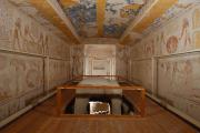 See entire tombThe burial chamber has a barrel-vaulted ceiling. It was originally intended to be a second corridor. Evidence of this change can be seen in the uneven finish of the floor near the walls compared to the smoothness of the central area.