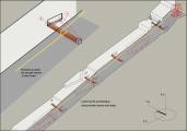 See entire tombThe stepped open entrance is now covered with a modern stairway that descends to a level landing before gate B. A short cliff overhang covers the gate. Traces of the edges of steps can be seen at the east end of the left (south) side of the entry cuting, indicating that the top of the original stairway was lowered. A pair of beam holes are located near the gate.