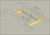 See entire tombThis square side chamber's axis lies perpendicular to the main tomb axis and is reached through a gate in the right (north) wall of pillared chamber F. The chamber has two pillars in the center and a gate in the left (west )wall leads to a small chamber.