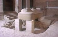 See entire tombThis side chamber is located off the southwest corner of the burial chamber, and is now filled with dirt and stone chips. The ceiling is flush with the soffit of the gate.