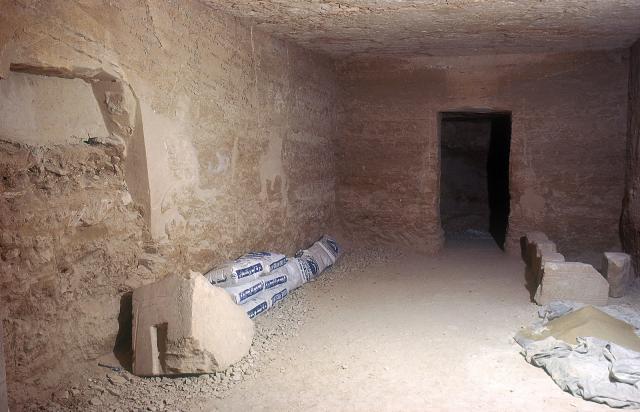 See entire tombThis chamber is set at a right angle to the main axis and lies off chamber K. It is full of flood debris.