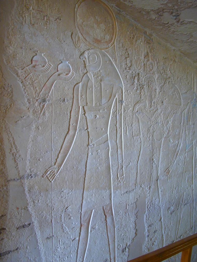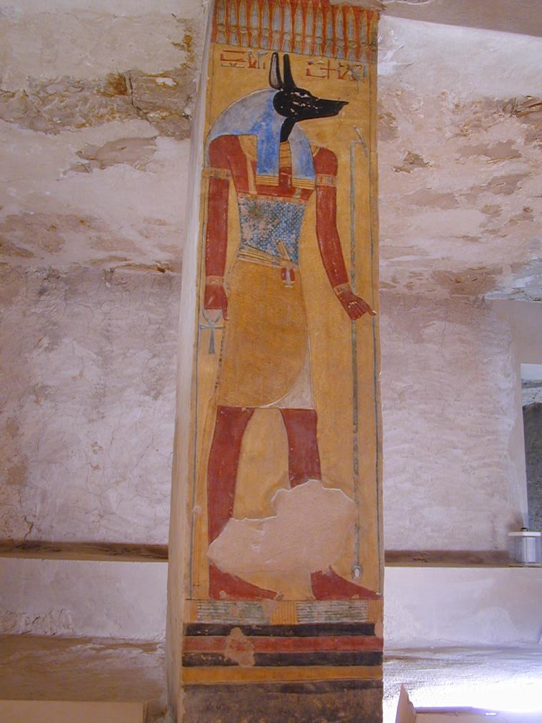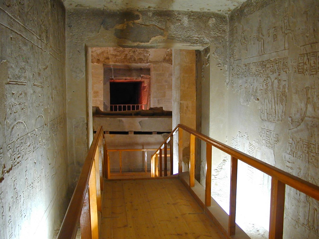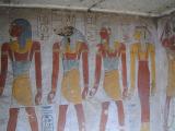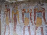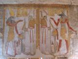 See entire tombThere was no shaft cut in the floor. The walls are decorated with several scenes of deities: Osiris, Imsety, Anubis, Duamutef, Isis, Hapy, Qebehsenuef, Nephthys and Horus-Iwnmutef.