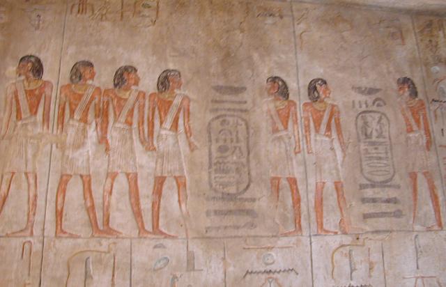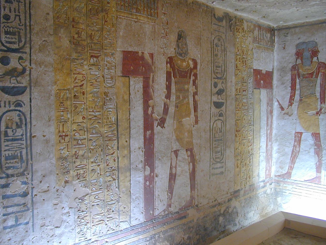 See entire tombThe cartouches on the reveals were redone by Setnakht to cover the name of Tausert.