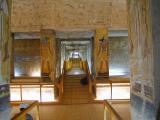 See entire tombThe gate leading into corridor I has compound jambs with their outer thicknesses cut back. There are representations of Hathor on the inner thicknesses. The threshold slopes down from front to rear (east to west).