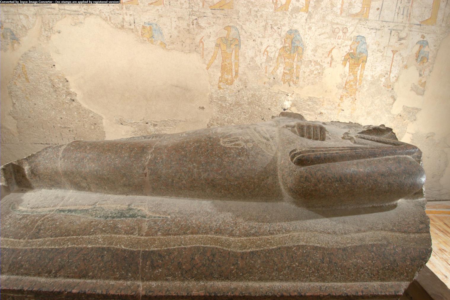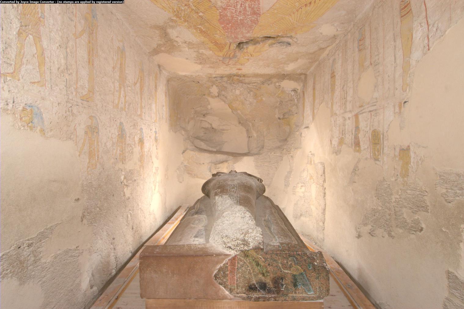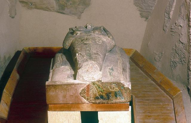 Altenmüller believes that the body of the king was initially interred in KV 14 with his wife, Tausert, then reburied by Setnakht in the abandoned KV 15, which was then quickly finished. Whether this was so, or the king was initially buried in his own unfinished tomb, the body was later removed and placed in a Coffin in the KV 35 cache. Over sixty Greek and other graffiti found on the walls of the tomb show that it remained open throughout the later Graeco-Roman period.