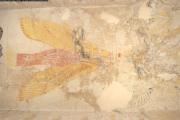 See entire tombThe compound jamb of gate D is fitted with a set of door pivot holes, showing that it was once closed by a pair of wooden doors. The outer lintel displays a winged disk, the jambs and outer thicknesses contain the names of Sety II, and the inner thicknesses show Sety II. All decoration was done as sketches in red paint.