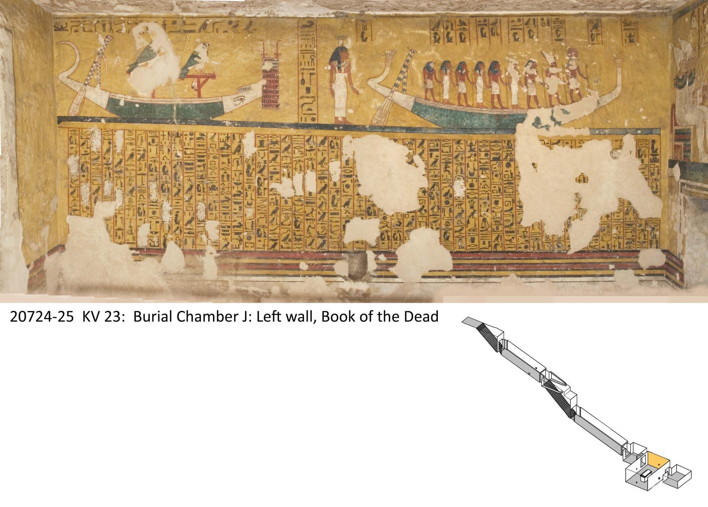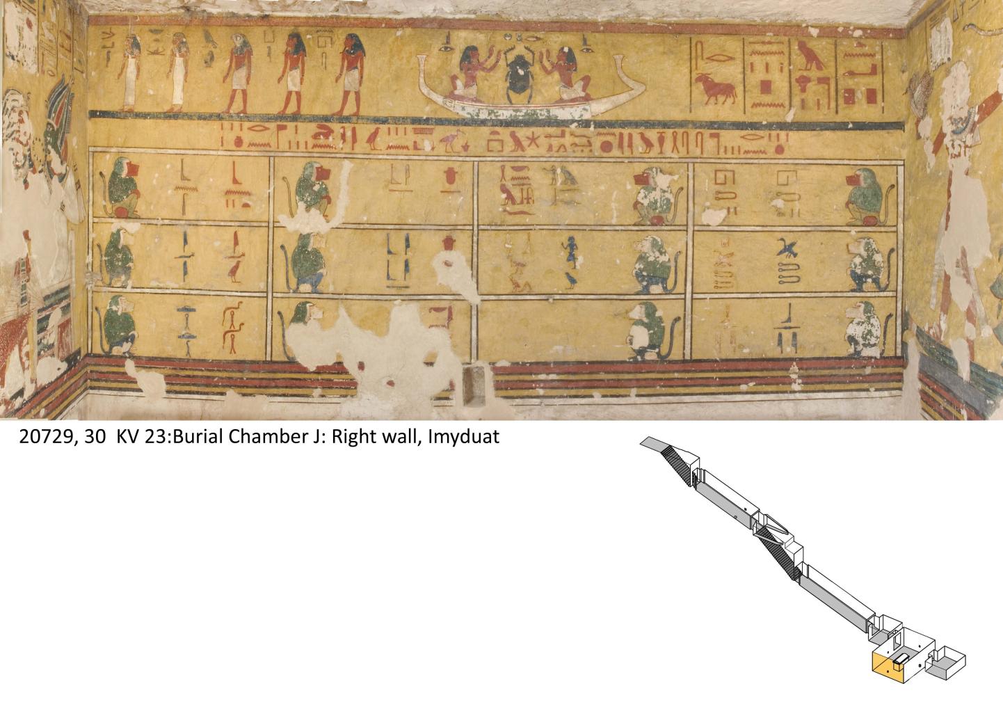 KV 23 was the last tomb to be used in the West Valley. In burial chamber J, the deceased is shown in a marsh, the only occurrence of this scene in a royal tomb.