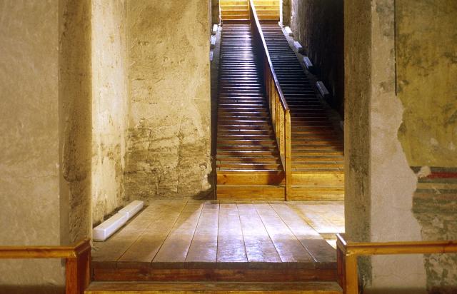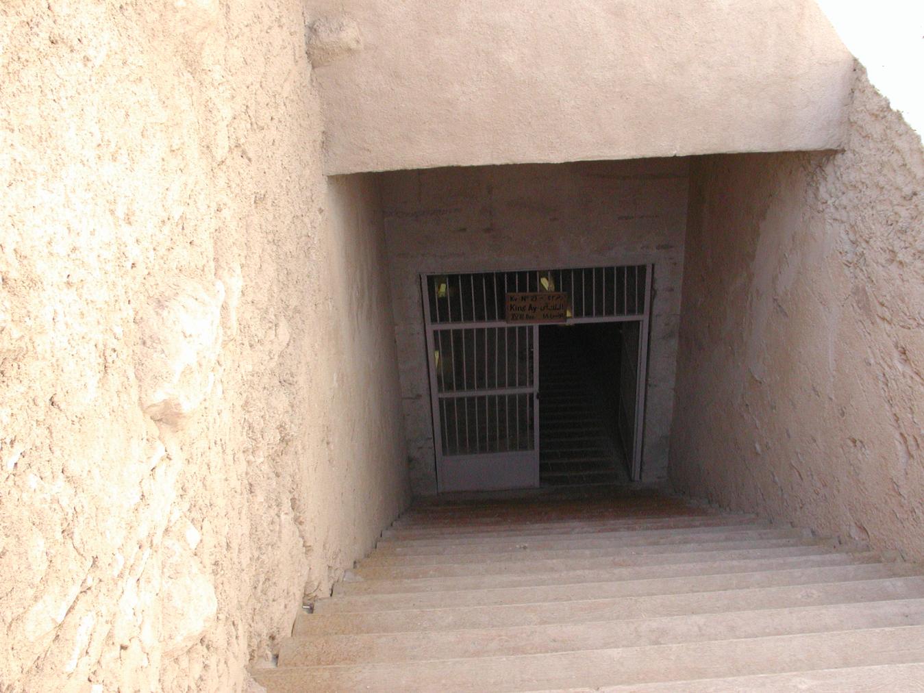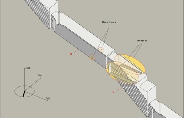 See entire tombThis sloping corridor has a pair of beam holes near the end. These were to control the descent of the sarcophagus into the tomb.