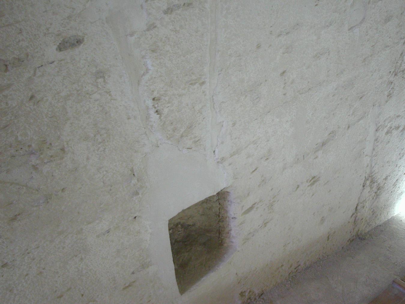 See entire tombChamber E is the usual location of the well shaft, but here it was not cut through the level floor. There are traces of plaster blocking at the entrance.