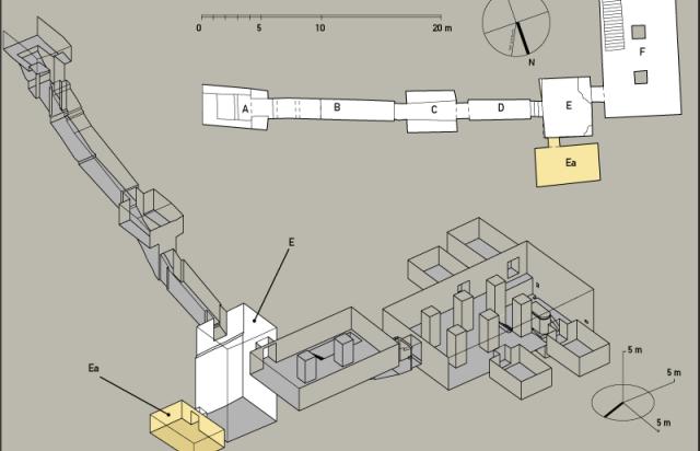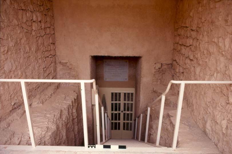 See entire tombThe chamber lies to the left (east) of the sunken part of the burial chamber.