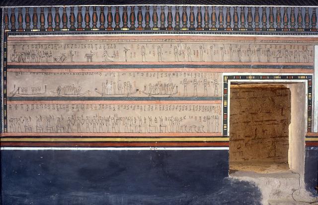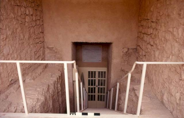 See entire tombThere is a door bolt hole in the left (south) thickness. The gate is now blocked with mudbricks and concrete.