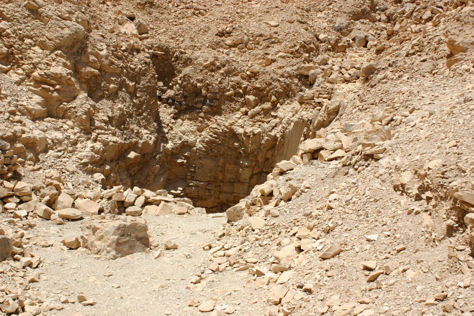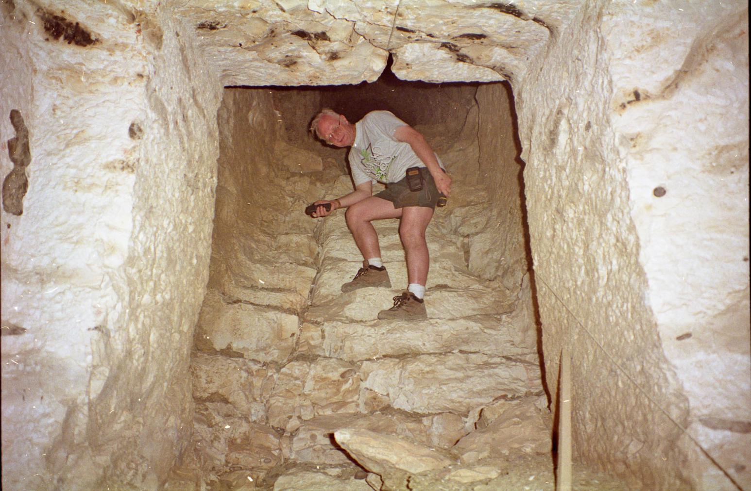 See entire tombThis stepped descent is cut into the left (south) end of the floor of chamber C1, on the axis of corridor B1.