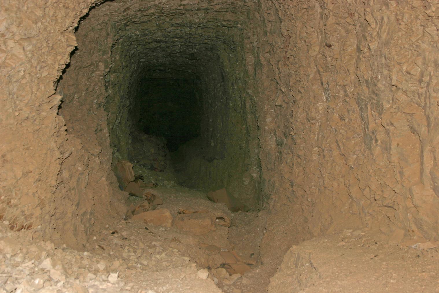 See entire tombThis rough-cut sloping corridor has an extension to the left (south) that is cut at its rear (west) end to form chamber B1a. According to Rose, a rough recess in the right (north) wall may be either from rock fall or an abandoned cutting. There are traces of red paint on the ceiling.